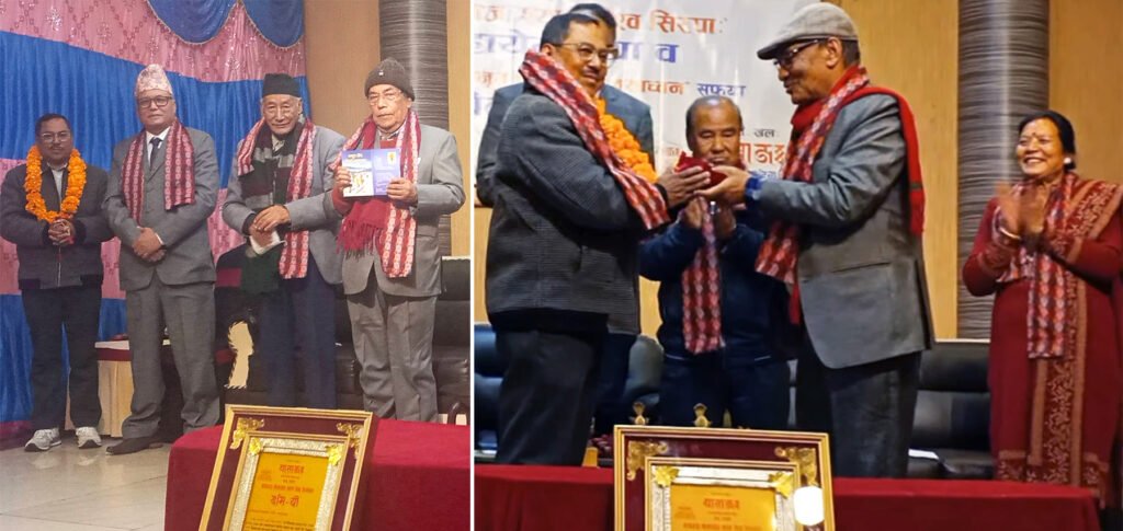 ख्वप/याताजः (नेपाल भाषा साहित्य दबू) या ग्वसालय् ख्वपय् जूगु छगू ज्याझ्वःया दथुइ प्यक्वःगु श्याम–विश्व सिरपा चिबाखं च्वमि नरेश अमात्ययात मूपाहाँ नेपालभाषा एकेडेमीया भाइस चान्सलर डा. पुष्पराज राजकर्णिकारं दसिपौ व सिरपादाता श्याम आशां नगद २५, ५५५ /– तका लःल्हात ।